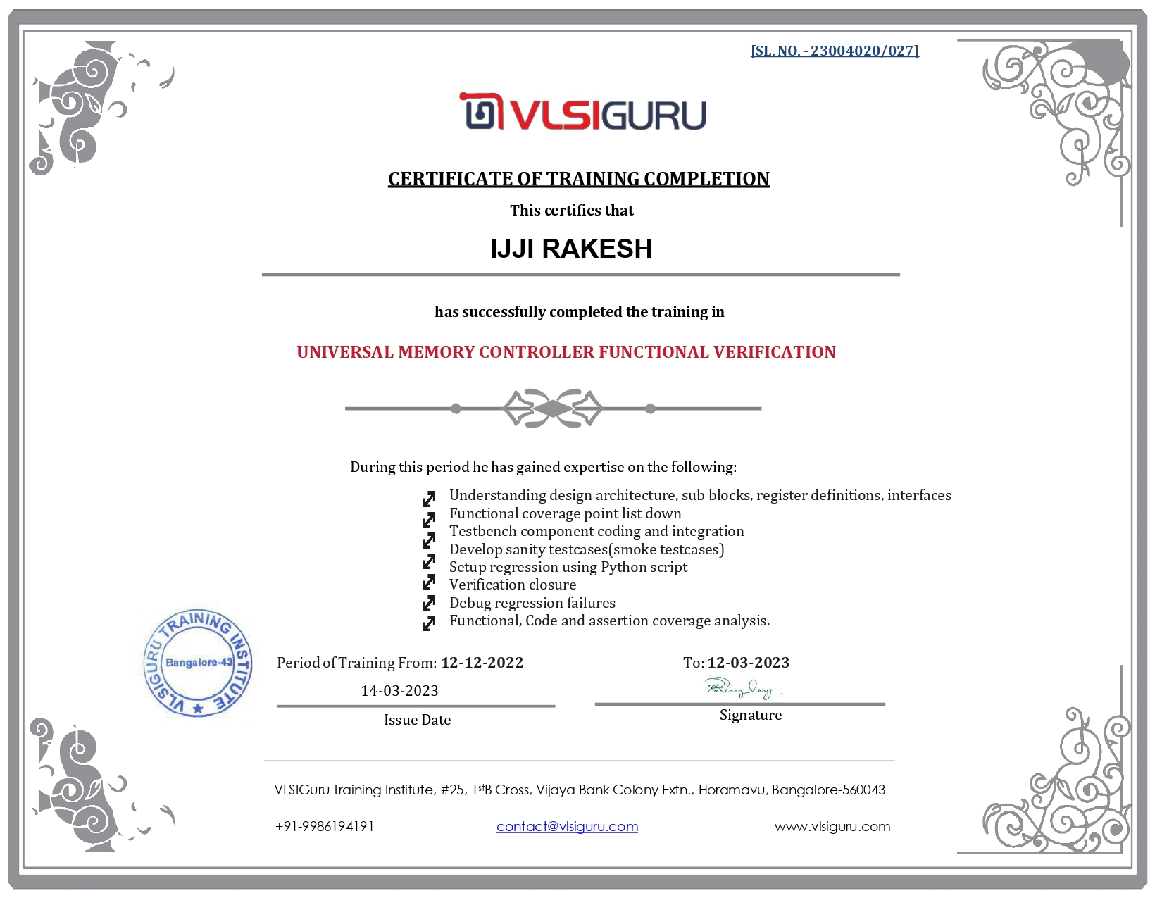 | Trainer | 12+ Years exp in RTL design & Functional verification |