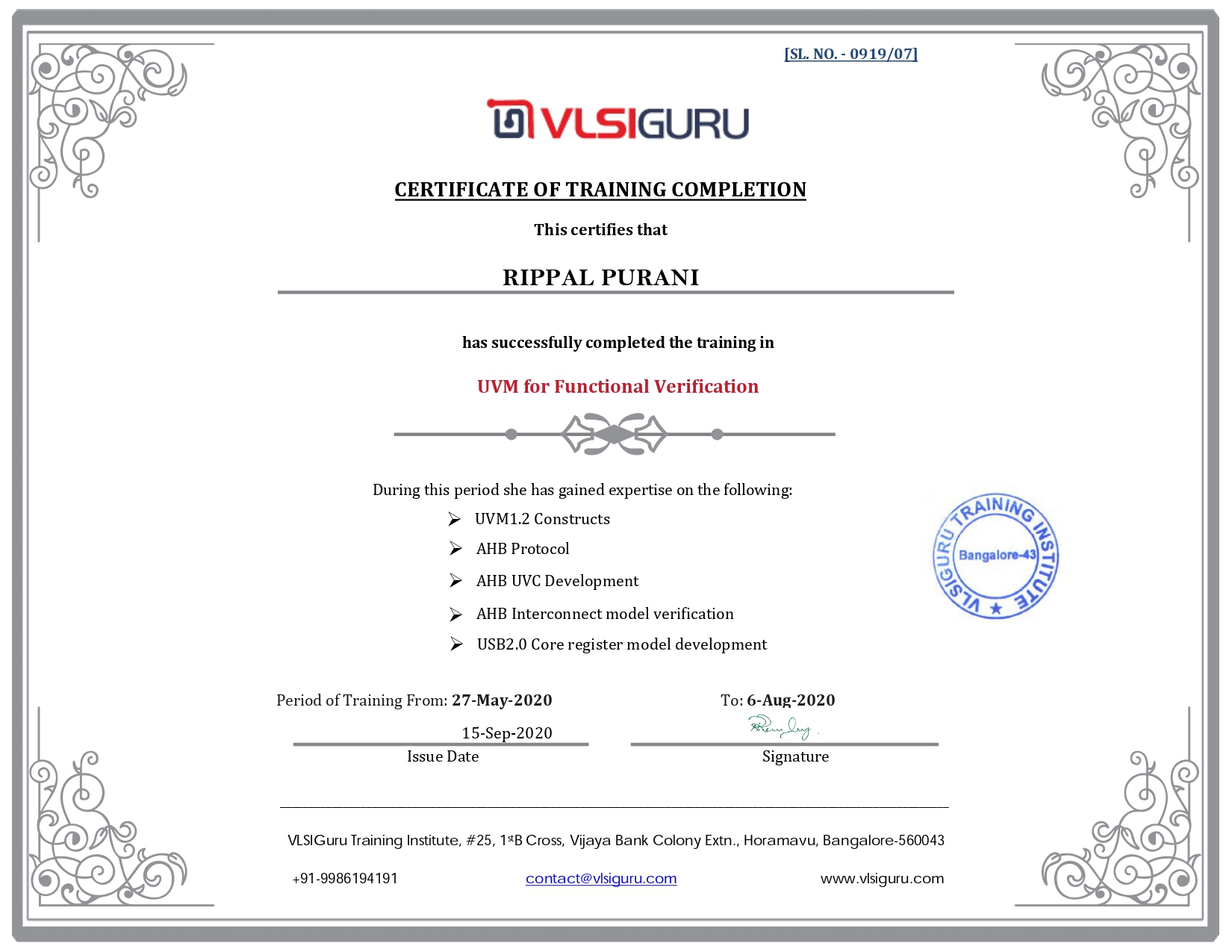 Course also includes multiple hands on projects based on APB, AHB test bench development. Also includes TB development for AHB interconnect model.