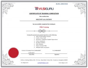 Each aspect of PERL training is supported by multiple examples. PERL installation is done on student laptop to enable them to practice examples at their end. Course also focuses on developing scripts specific to VLSI and functional verification requirements. However course is not just limited to VLSI.